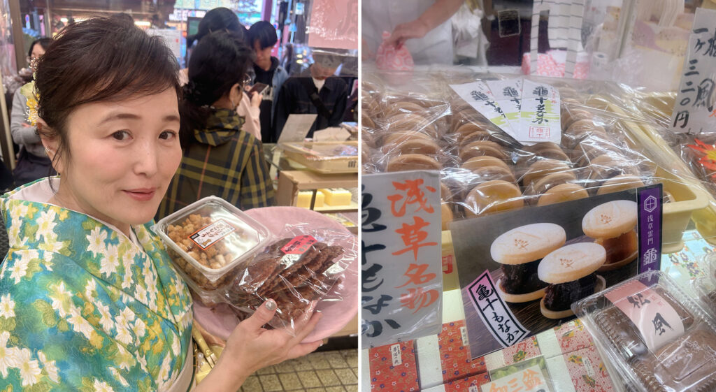 Hello, everyone! We are the staff of Yae Kimono, living in the charming neighborhood of Asakusa. Today, we’re changing into beautiful kimono to take you on a tour of Asakusa’s most popular sweets! Asakusa isn’t just about historical sights; it’s also full of cozy little shops perfect for a leisurely stroll. Let’s explore together!