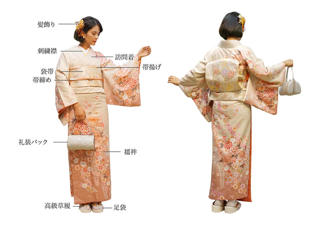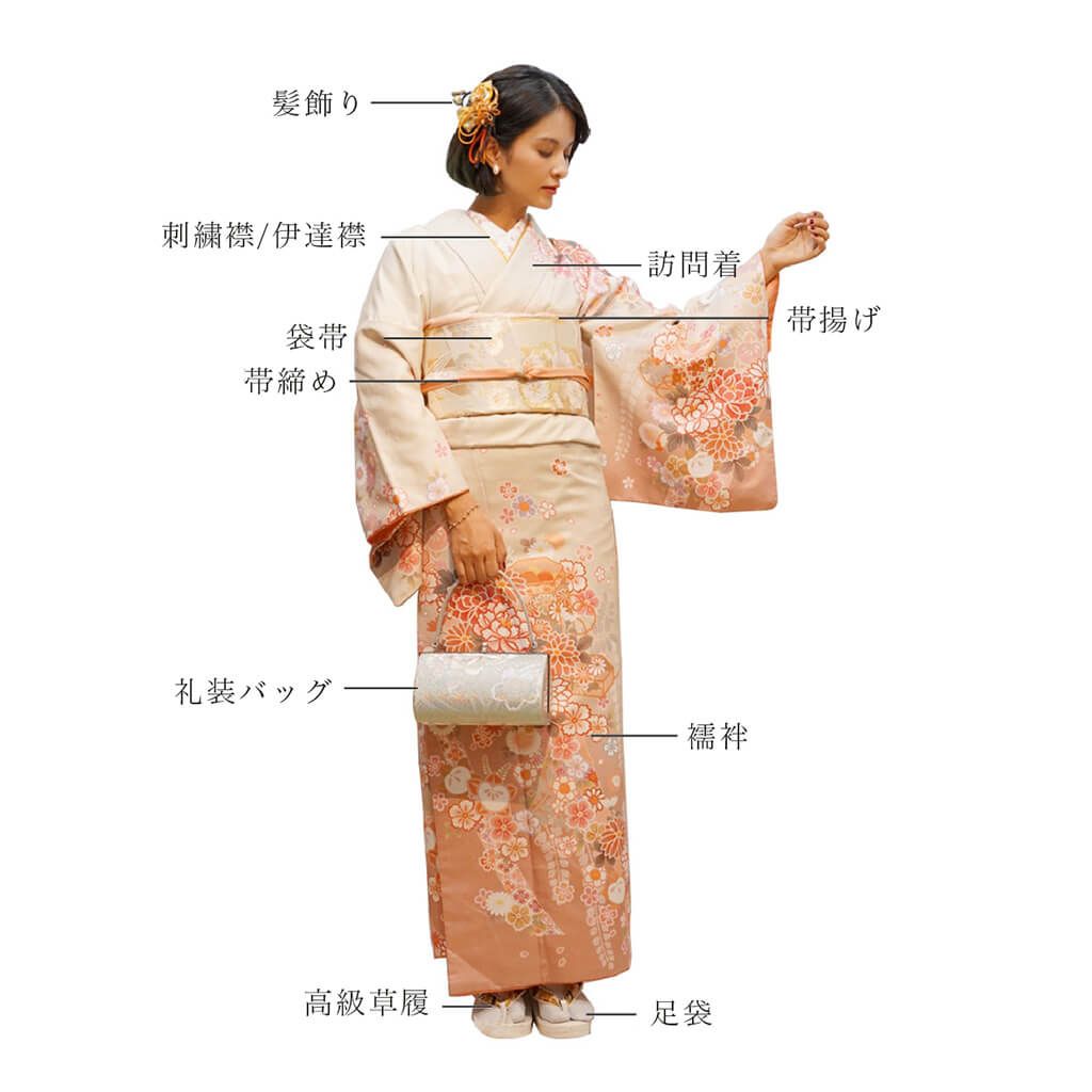 ● 套餐内容:租賃訪問著+著裝+專業髮型設計+內衣、袜子、草履、手提包等