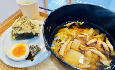(日本語) MISOJYUのあったか味噌汁を、着物レンタル八重の着物で