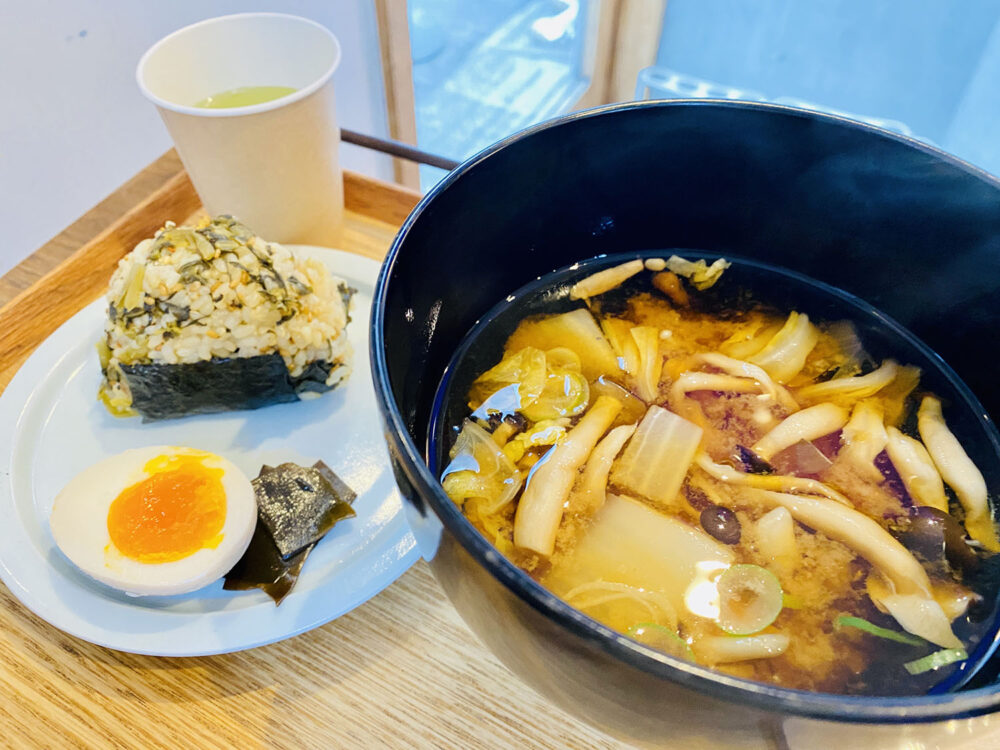 除了味噌湯,店內也有各式各樣的飯糰,這些飯糰與湯的搭配更是絕配。每一份食材都經過精心挑選,不僅美味可口,也讓人能吃得健康、安心。對於周邊的上班族或是旅人來說,這裡的餐點更是外帶首選,成為他們輕鬆享用早午餐的好地方。