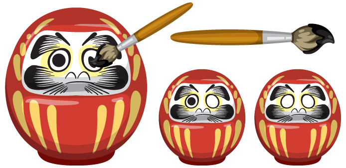 「だるま」は日本の伝統的な工芸品で、仏教の達摩祖師に由来しています。形は丸い赤い人形で、目も口もなく、禅宗の教えにある「不動心」や「信念を貫く」ことを象徴しているそうです。