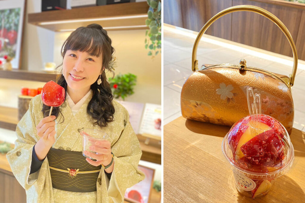 从我们店出发,步行约 4 分钟就能找到超美味的「Candy Apple」!这里的苹果糖真的好好吃 〜外层脆脆甜甜的,里面的苹果又多汁又爽口,拿来拍照超上镜!
