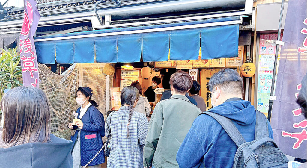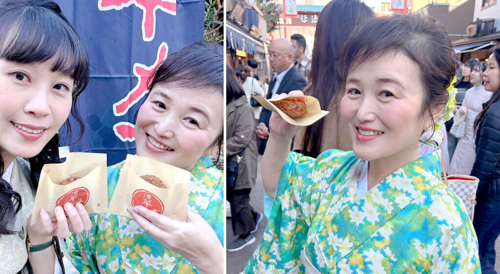接下来推荐的是「浅草メンチ」!这家超有名的炸牛肉店就在浅草寺附近,从我们店走过去大概 6-7 分钟~外皮酥脆、内馅鲜嫩多汁,还带着甜甜的洋葱香,每一口都让人停不下来!超级推荐 大家现买现吃,这样才能享受到最棒的口感!虽然人潮很多,但店员动作超快,不用担心等太久喔〜